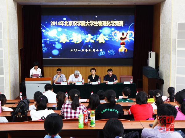 校团委书记李相阳老师首先宣读获奖学生名单,2014年我校共有31人参加大学生物理竞赛,其中6人获得市级奖励,25人获得校级奖励。共有77人参加大学生化学竞赛,其中12人获得市级奖励,45人获得校级奖励。