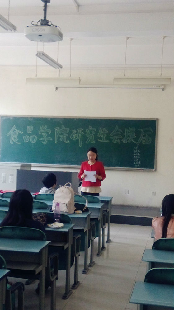 最后 ,刘老师在讲话中谈到,对上一届研会成员的辛苦付出表示感谢,对研究生班级的配合表示感谢。希望新一届的研会成员能够继续发扬学院研会认真、团结的工作风格,一如既往的为食品学院学生工作作出自己的贡献。