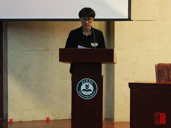 在女子三级跳中以10米41的成绩打破北京农学院维持12年记录的马云娃同学和参加开幕式啦啦操表演的王诺瑶同学分别作为优秀运动员代表和优秀个人代表进行发言,她们谈到自身在平时训练当中的心路历程,并对运动会中的所有参与人员表示肯定。马云娃同学在发言中指出,今天优异成绩的取得和日常的刻苦训练以及老师的悉心指导是分不开的,本次运动会让她更明确了自身的目标,希望在以后的比赛中能够继续创造优异成绩。