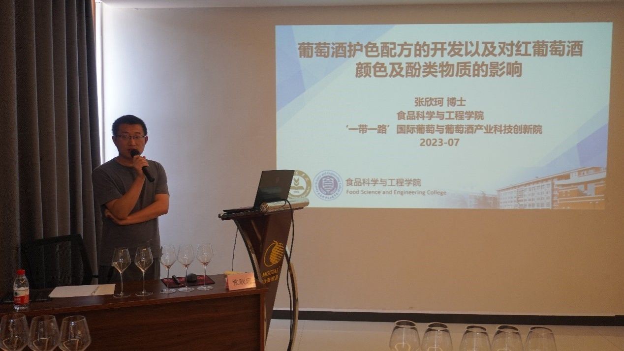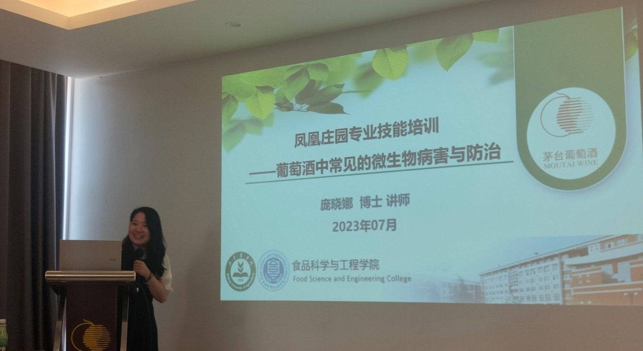 在河北昌黎,师生为贵州茅台酒厂(集团)昌黎葡萄酒业有限公司凤凰庄园开展了为期3天的培训活动,受到了公司董事长李春风、总经理范雪梅和众多员工的热烈欢迎。李德美深入剖析了国内22款马瑟兰和赤霞珠葡萄酒的独特特点,解读了它们的风格特征。通过对不同产区、年份和工艺的葡萄酒进行品尝与对比,呈现了一场别开生面的葡萄酒品鉴之旅。青年教师张欣珂着重讲解了葡萄酒感官评价中的标度检验法,分享了团队在葡萄酒护色项目研究方面的最新成果,指导企业使用科学工具和方法提升葡萄酒的生产。庞晓娜分享了团队在凤凰庄园微生物多样性方面的最新研究进展,讲授了葡萄酒中常见微生物病害的识别和防治方法。在昌黎期间,师生还走访了中粮长城华夏酒庄和朗格斯酒庄。