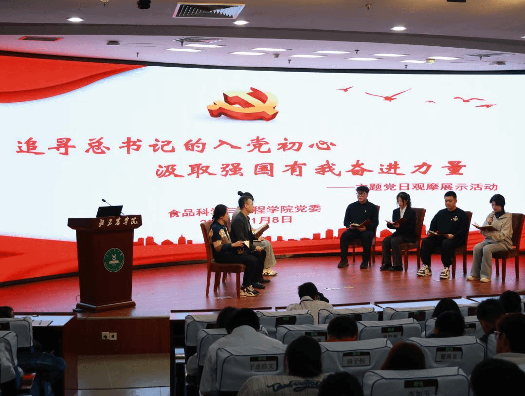 在特色主题党日观摩活动中,学生党员逐一分享了自己的入党经历,并结合自身学习实践、服务保障重大活动、志愿服务等经历,引导大一新生自觉将国家需要和自身成长相结合,努力学习、坚持创新,积极参与社会实践活动、服务社会。