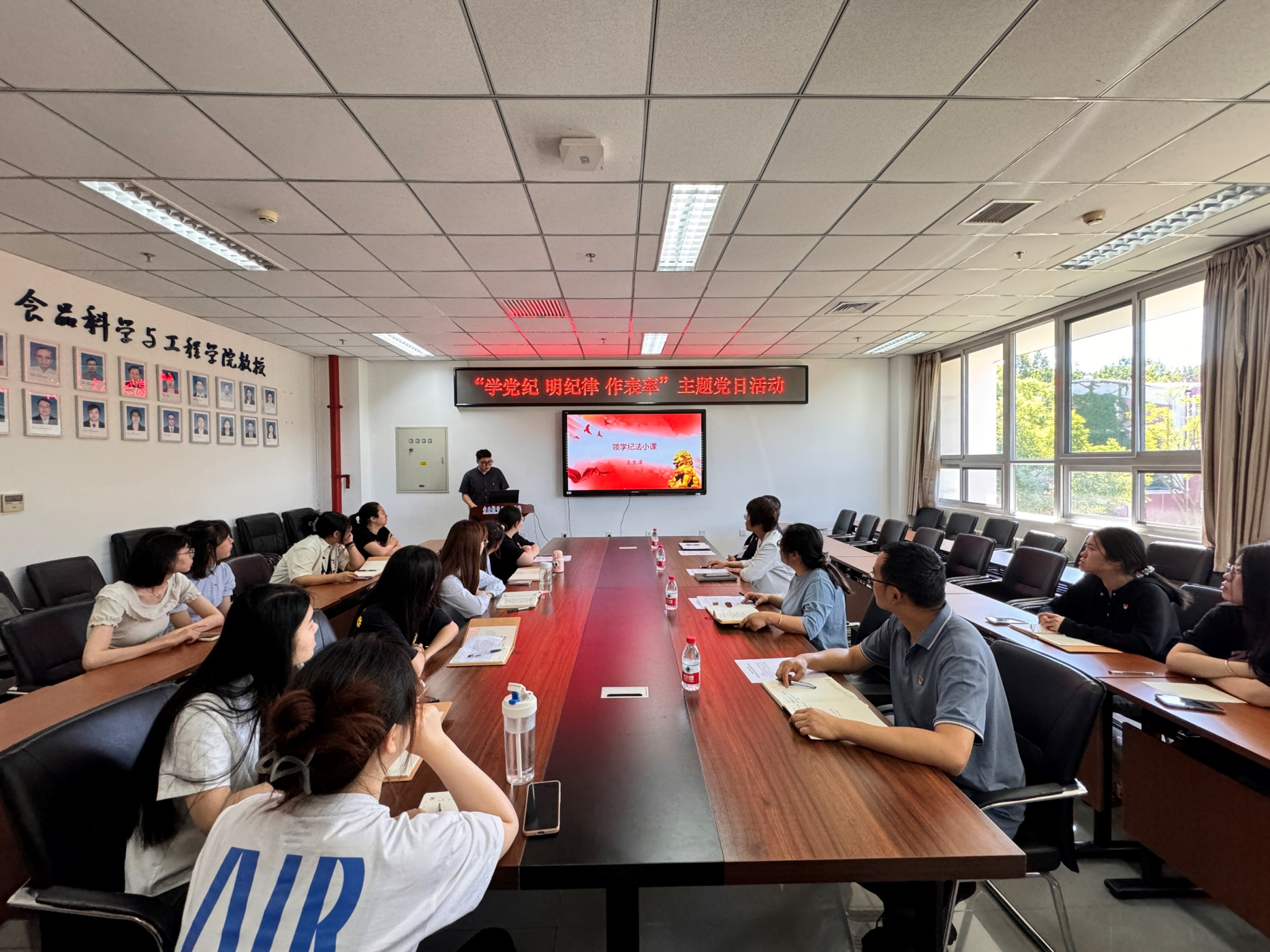 主题党日活动以“学党纪 明纪律 作表率”为主题,采用学生党员讲“纪法小课”“微党课”、互动讨论等创新形式开展。在纪法小课环节,学生党员王文泽结合学习《中国共产党纪律处分条例》,以“规范党员网络行为”为题,引导学生党员在使用微信等社交媒体时,严格遵守党规党纪,模范遵守法律法规,自觉坚守原则和底线。在微党课环节,学生党员刘桐、赵盼君分别从学习《条例》体会、以党纪学习引领学风建设角度与大家交流互学,并设定知识抢答环节,以加深加固党员对党纪学习教育的认识。