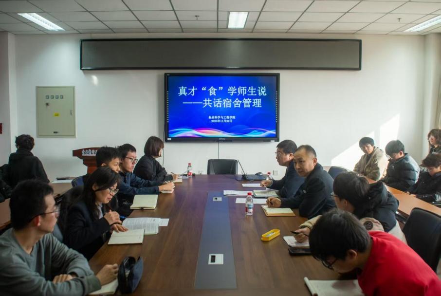 11月28日,食品学院组织召开“真才‘食’学师生说——共话宿舍管理”主题活动。学院党委副书记、副院长张文娜,公寓中心负责人李俊升、吕大鹏参会,活动由辅导员赵静主持。