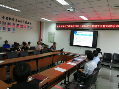2018年7月11日下午,开云手机站登录入口在食品楼218召开了2018上半年民主管理大会暨师德培训会。副校长姚允聪应邀出席会议,学院领导班子、全体教职工参会。