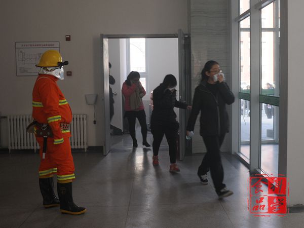下午1:30分,食品楼一层“突发火情”,整个一层烟雾弥漫。此时警铃响起,学院疏散引导组,通讯联络组,安全防护组,灭火组,校园消防应急小分队,开门、断电组等各个小组人员各司其职,按照演练分工方案有条不紊地开展工作。学生们按照老师前期培训时的嘱托,迅速将手中毛巾沾湿并捂住口鼻,有序撤离,在最短的时间内撤离到指定的安全地点。