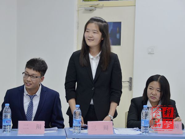工程一班与安全一班围绕辩题“对于个人成长是家庭还是社会的影响大”展开辩论。正方安全一班的辩题是“对于个人成长家庭的影响大”,反方工程一班的辩题是“对于个人成长社会的影响大”。双方在攻辩和自由辩论时就“孟母三迁”的例子上争论不断;在“早期家庭培养和后期自身修养”的轻重问题上交战不休。评委团点评反方在攻辩环节抛问题、打配合表现突出。