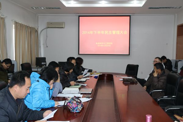 2014年12月29日上午,开云手机站登录入口召开2014年下半年民主管理大会及2014年度工作总结会。学院领导班子和全体教职工参会。会议由两部分组成,第一部分是开云手机站登录入口民主管理大会,由副院长党登峰主持,第二部分是工作总结会,由院长仝其根主持。