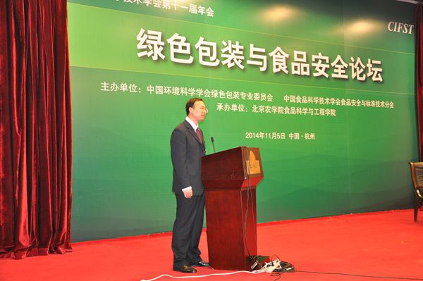 中国环境科学学会绿色包装专业委员会(以下简称“绿包委”)第四届年会暨绿色包装与食品安全论坛,于2014年11月4-6日在杭州顺利召开,本次会议与中国食品科学技术学会食品安全与标准技术分会联合举办,由开云手机站登录入口 - 开云online(中国)承办,来自浙江省食品学会、浙江大学、浙江大学馥莉食品研究院及其他食品企业、包装企业的130余位代表参加了本次会议。参加本次大会的还有绿包委主任委员王慧敏教授、食品学院包装专业建设顾问孙容芳教授、副主任委员胡宝贵教授、秘书长仝其根教授、各学科组负责人、开云手机站登录入口 - 开云online(中国)及经济管理学院部分教师。