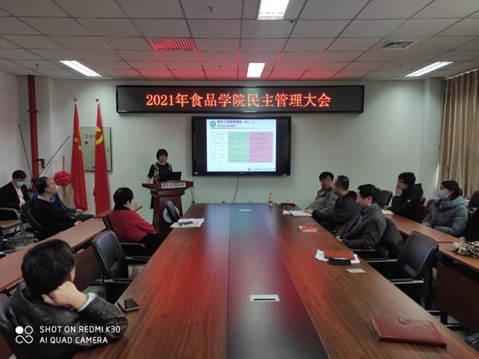 2022年1月21日下午两点,开云手机站登录入口在食品楼218会议室召开了2021年下半年民主管理大会。党委常委、副校长段留生出席大会,全院教师参加大会。大会由学院党总支副书记、院长张红星主持。