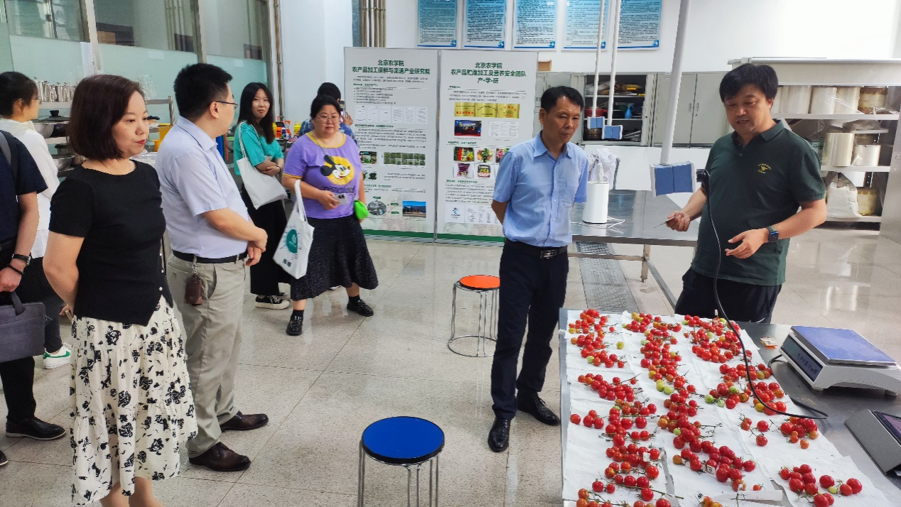 会前,丁轲带领郭新光一行参观了学院粮油加工、果蔬贮藏加工、啤酒、葡萄酒酿造以及益生菌中试车间。