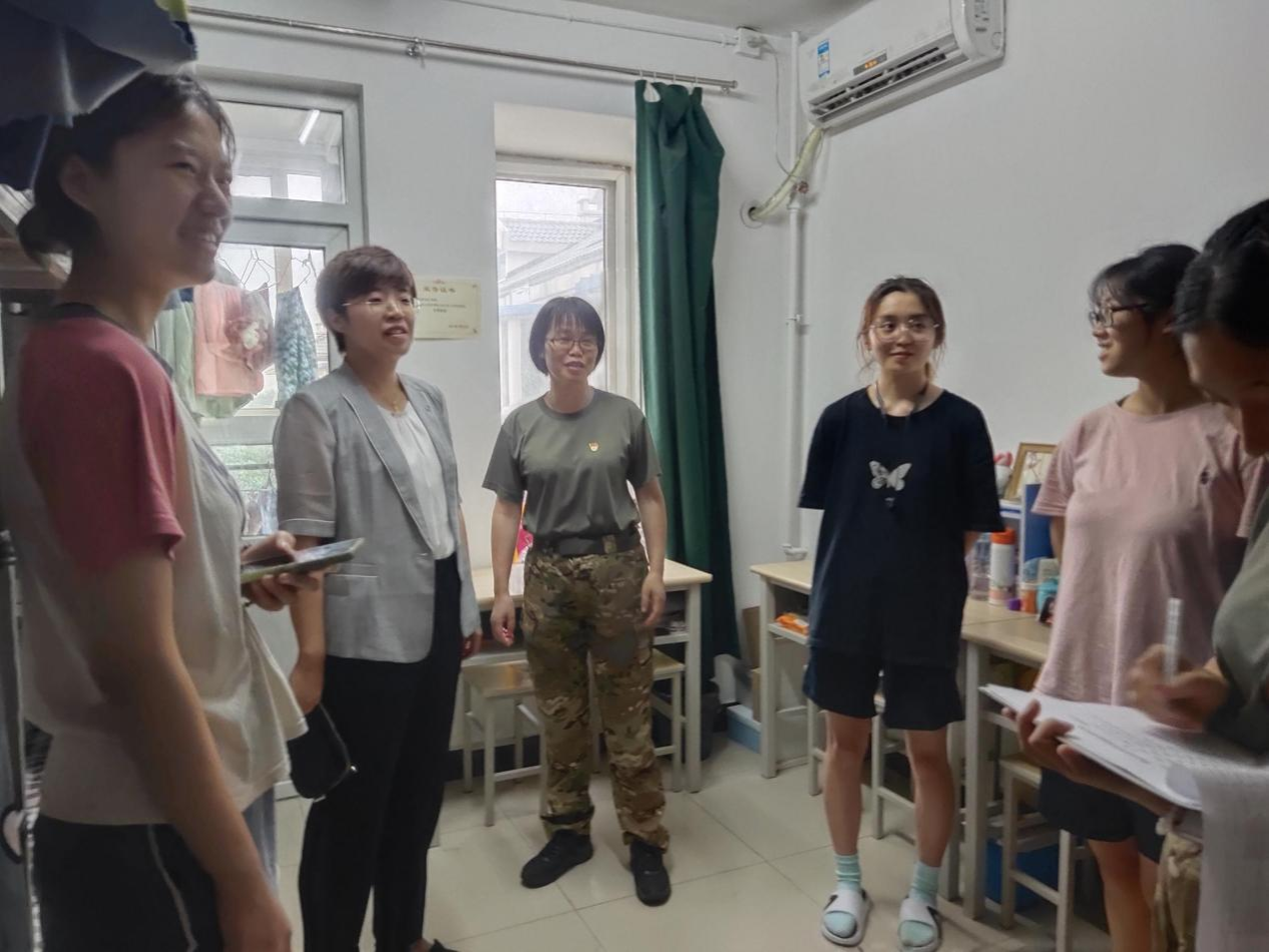 在宿舍里,老师和参训学生亲切交流,了解学生训练情况和思想动态,对他们乐观面对酷热天气考验,精神饱满,刻苦训练提出表扬。特别是军训以来,干净整洁的宿舍环境让老师们眼前一亮。老师们还针对即将到来的暑假,开展了专项安全教育,祝同学们过一个安全有收获的假期。