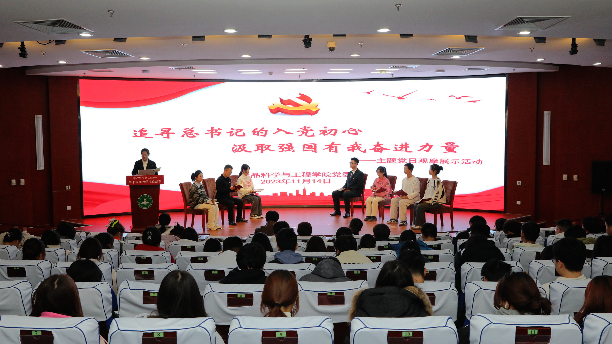为贯彻落实学校第四次党代会精神,加强青年学生思想引领,积极向党组织靠拢。近日,食品学院党委在图书馆报告厅举办了“追寻总书记的入党初心 汲取强国有我奋进力量”主题党日观摩活动。学院党委书记靳晓熙、学生工作负责人闻海洋、团委书记罗蕊、各年级辅导员、党员代表和大一学生参加活动。主题党日活动由酿酒工程本科生党支部书记魏晓峰主持。