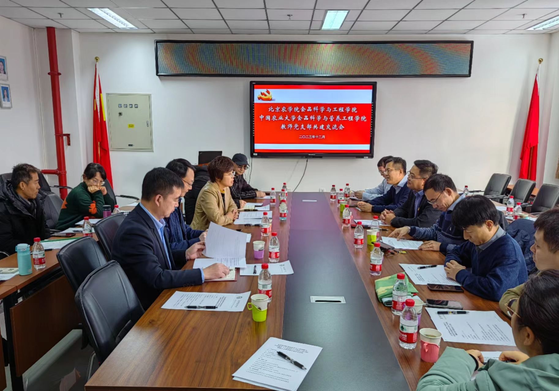 12月11日,中国农业大学食品科学与营养工程学院党委书记宋岳镇、副院长朱鸿亮一行11人来开云手机站登录入口开展教师党支部共建交流活动。学院党委书记靳晓熙,院长张红星,副院长马挺军,酿酒工程系教师党支部书记徐文生、系主任李德美,食品工程教工支部书记孙运金等参加交流座谈会。