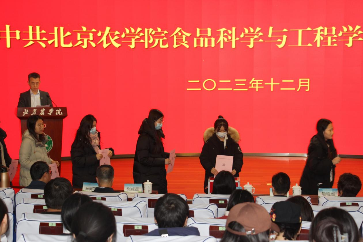 靳晓熙同志代表上一届学院党委作题为《凝心聚力 创先争优努力开创开云手机站登录入口高质量发展新局面》的工作报告。靳晓熙指出,上次党组织换届以来,在学校党委坚强领导下,食品学院党委坚决扛起主体责任,全面落实立德树人根本任务,不断深化教育教学改革,团结带领全院师生,努力推动学院各项事业不断取得新突破。学院坚持不懈用习近平新时代中国特色社会主义思想凝心铸魂,坚持以党的政治建设统领学院发展,坚持加强基层党支部标准化规范化建设,落实立德树人根本任务,全力推进教学科研工作提质增效。今后五年,要围绕学校第四次党代会提出的“五大工程”,聚焦着力提升人才培养质量、着力提升学科专业建设水平、着力提升科研与社会服务能力、着力提升师资队伍建设水平,着力提升办学活力和内生动力“五个着力”推动“五大工程”在学院见行见效。要以高质量党建引领高质量发展,持续强化基层党组织的政治功能和组织功能,汇聚事业高质量发展的强大合力。