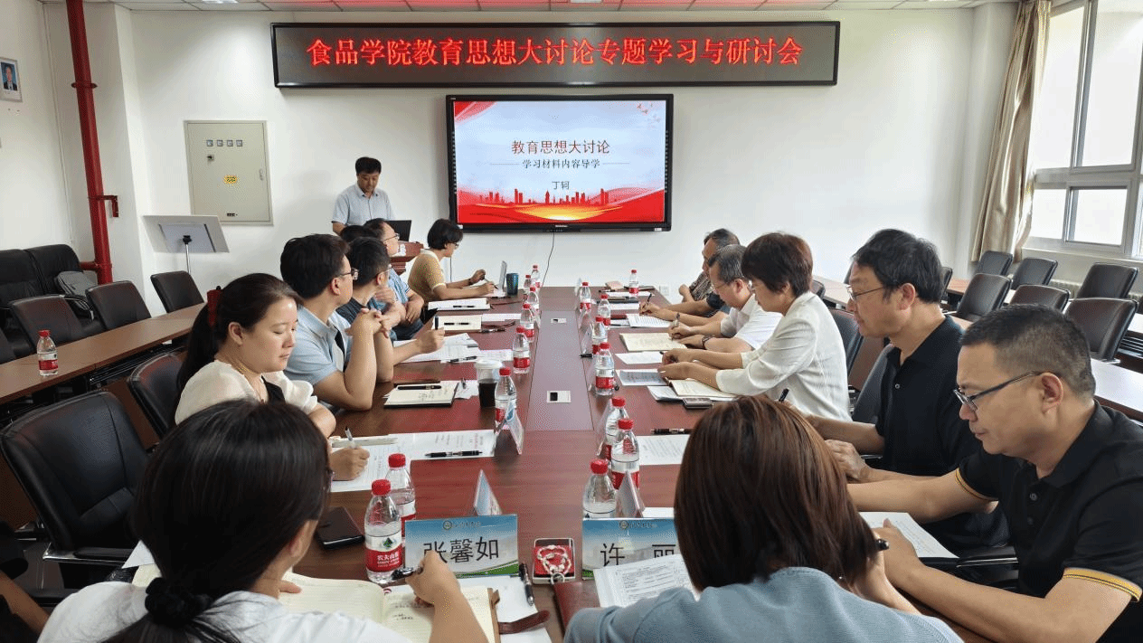 全体参会人员集体学习习近平总书记关于教育的重要论述,学习本次教育思想大讨论学习资料中有关高等教育发展目标和课程思政建设的相关内容。班子成员和参会老师逐一围绕落实立德树人根本任务、持续改进OBE教育理念以及学院重点任务发言。