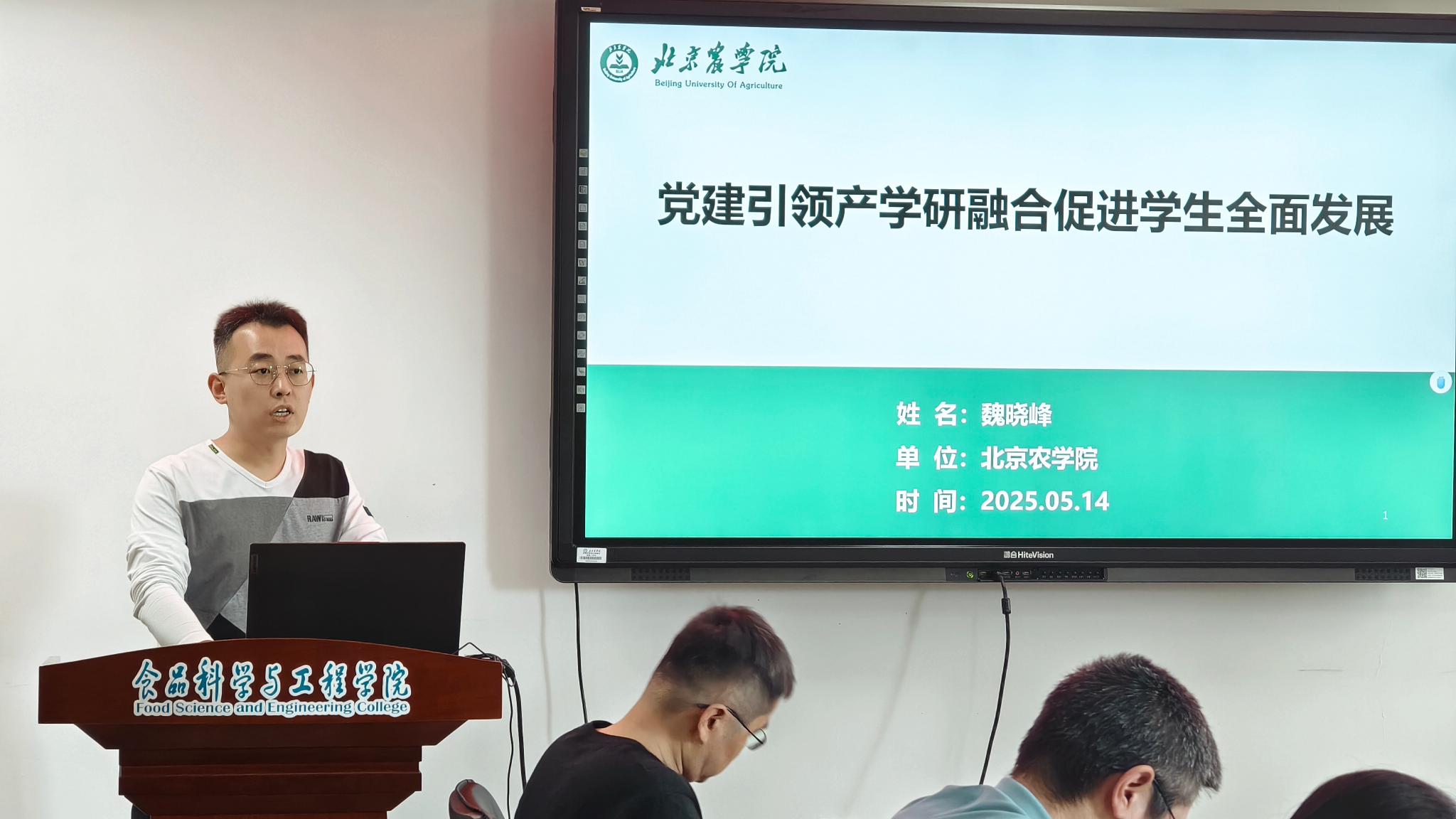 两位教师分享了各自在教学科研与管理服务等各项工作中,不忘初心、践行使命的感悟体会,生动展现师德师风涵养成果。2024年北京高校优秀教学管理人员获得者丁轲教授讲述了自己作为一线教师和教育管理者,积极开展教育教学研究,不断完善教学改革支持体系,为学生实习与就业创造条件,强化学生实践能力培养,着力打造德育为先、实践为重育人特色的经验和体会。酿酒工程系教师党支部书记魏晓峰,以“党建引领产学研 促进学生全面发展”为题,分享了入职以来,从党支部建设、班级建设、课程、社会实践、学科竞赛等不同维度潜心育人,并最终带领学生支部荣获北京高校党建工作“样板支部”、北京高校红色“1+1”示范活动一等奖等多项成果的奋斗历程。