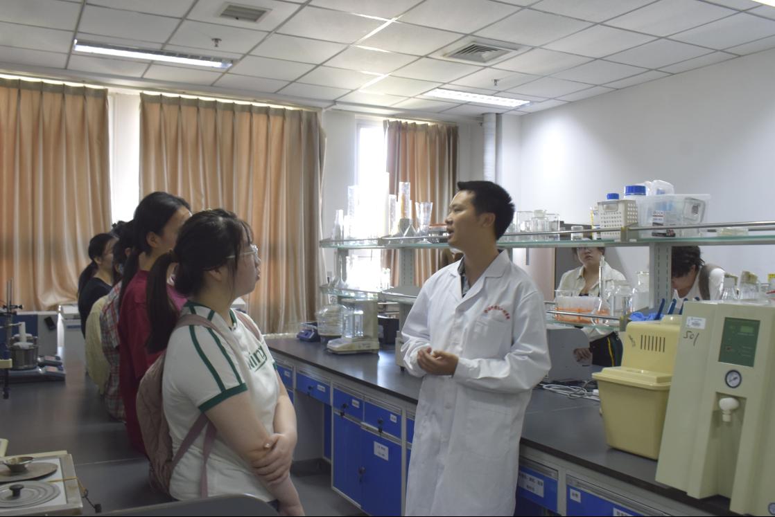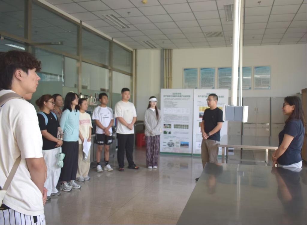 本科生和研究生分批分组参观了学院实验教学与科研平台。在都市农业食品加工与食品安全北京市实验教学示范中心,老师详细演示了高效液相色谱仪、气相色谱-质谱联用仪等精密设备的操作原理,讲解其在食品成分分析、农残检测中的实际应用。