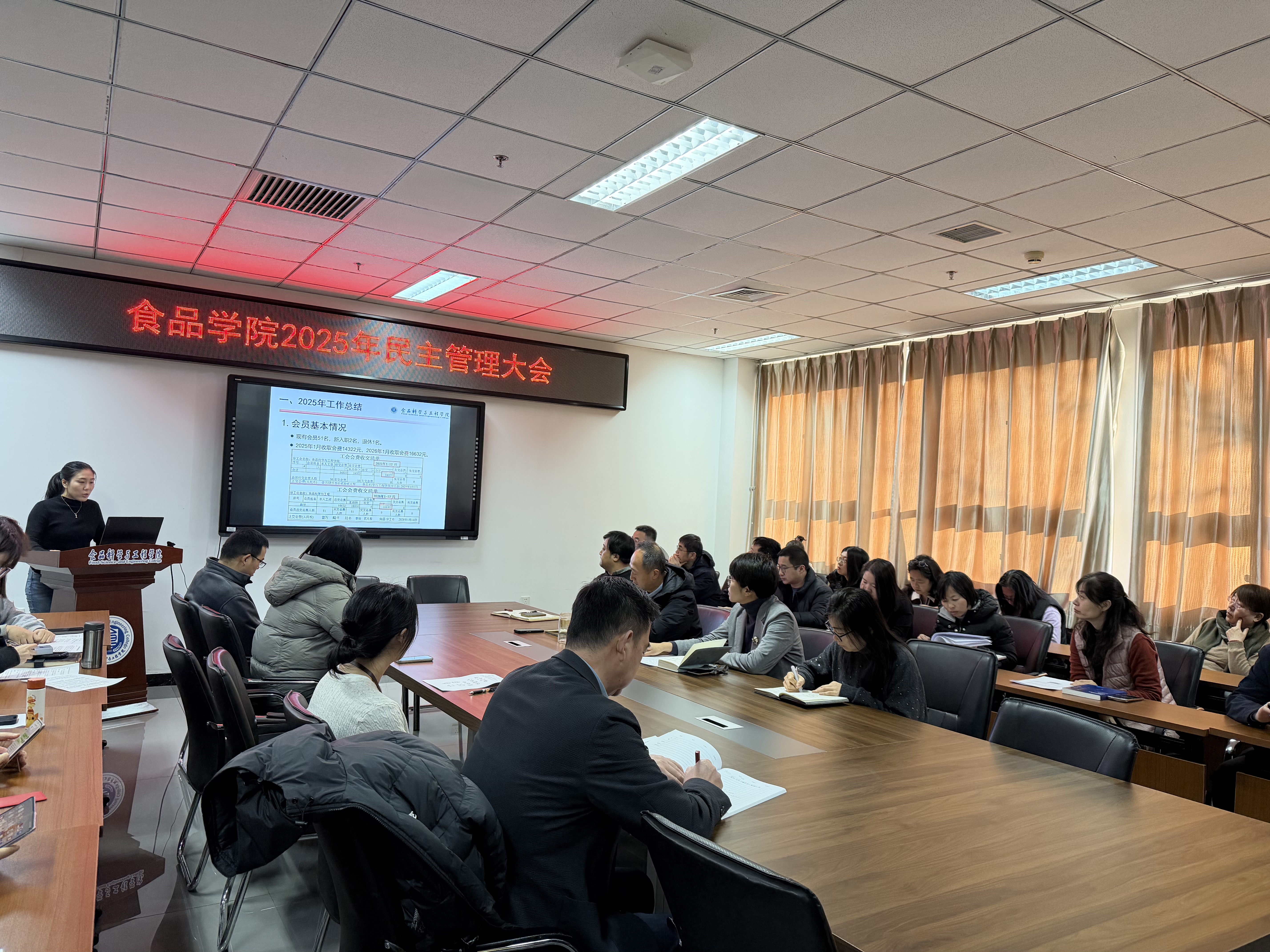 党委书记靳晓熙作总结讲话,她充分肯定了全体教职工一年来在各项工作中的辛勤付出与责任担当,强调要坚持以高质量发展为主线,进一步统一思想、凝聚共识、强化工作落实。2026年是“十五五”规划开局之年,在学校党委的坚强领导下,全体教师要聚焦重点工作,科学谋划发展,锚定奋斗目标,主动担当作为,为推动学院高质量发展作出新的贡献。
