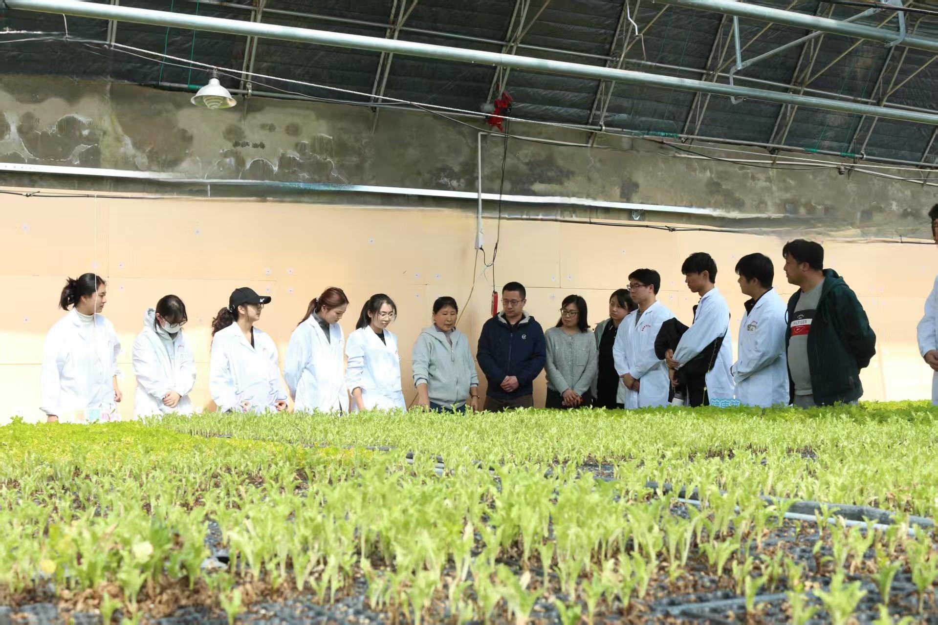 师生一行实地参观了公司的现代化农业有机种植区等核心区域,直观领略了园区“特色果蔬种植 + 净菜轻加工 + 科普研学”三产融合的产业运营模式。参观过程中,学院青年教师舒畅结合专业背景及团队研究方向,为同学们讲解了特色功能性蔬菜的贮藏保鲜及高值化加工技术。