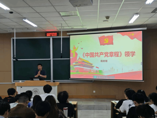 开班仪式结束后,韩树明领学中国共产党章程》,带领全体学员全面深入学习党章的功能和定位、基本架构及主要内容等。