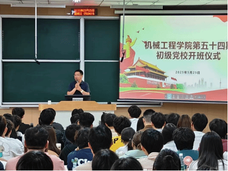 为进一步加强党员后备力量培养,提升学生思想政治素养,2025年5月25日上午9点,机械工程学院党委举办第五十四期初级党校开班仪式。学院党委副书记副院长韩树明、专职组织员吕丽妹出席活动,学院第五十四期入党积极分子150人参加。