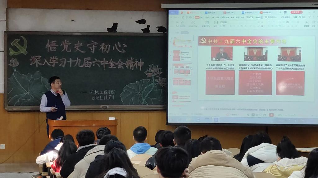 机械工程学院党委将进一步深入学习十九届六中全会精神,真正入脑入心,落实到行动上、贯彻到工作中,以更加过硬的作风、更高质量的工作,推动全会精神落地落实,为学校学院的发展做贡献。