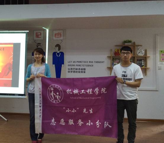 会上,刘晶向大家详细介绍了学院设计“小小”的理念,希望更多的青年志愿者能够参与进来,不断增强师范技能,发扬无私奉献的志愿服务精神,增强社会责任感,展示机械学子的青春风采。矫海燕宣读优秀志愿者名单并宣布第五季“小小”系列活动正式启动,刘晶为获奖人员颁发荣誉证书,并郑重为“小小”先生、“小小”先锋、“小小”发明家、“小小”教育家四支志愿服务团队授旗。优秀志愿者代表白雪儒和杜征航,用慷慨激昂的语言,与大家分享了参与“小小”的亲身体验。大家都谈到他们因选择“小小”而精彩,更立志为“小小”的发展而继续努力,发扬奉献、友爱、互助、进步的志愿者精神,展示青春风采。
