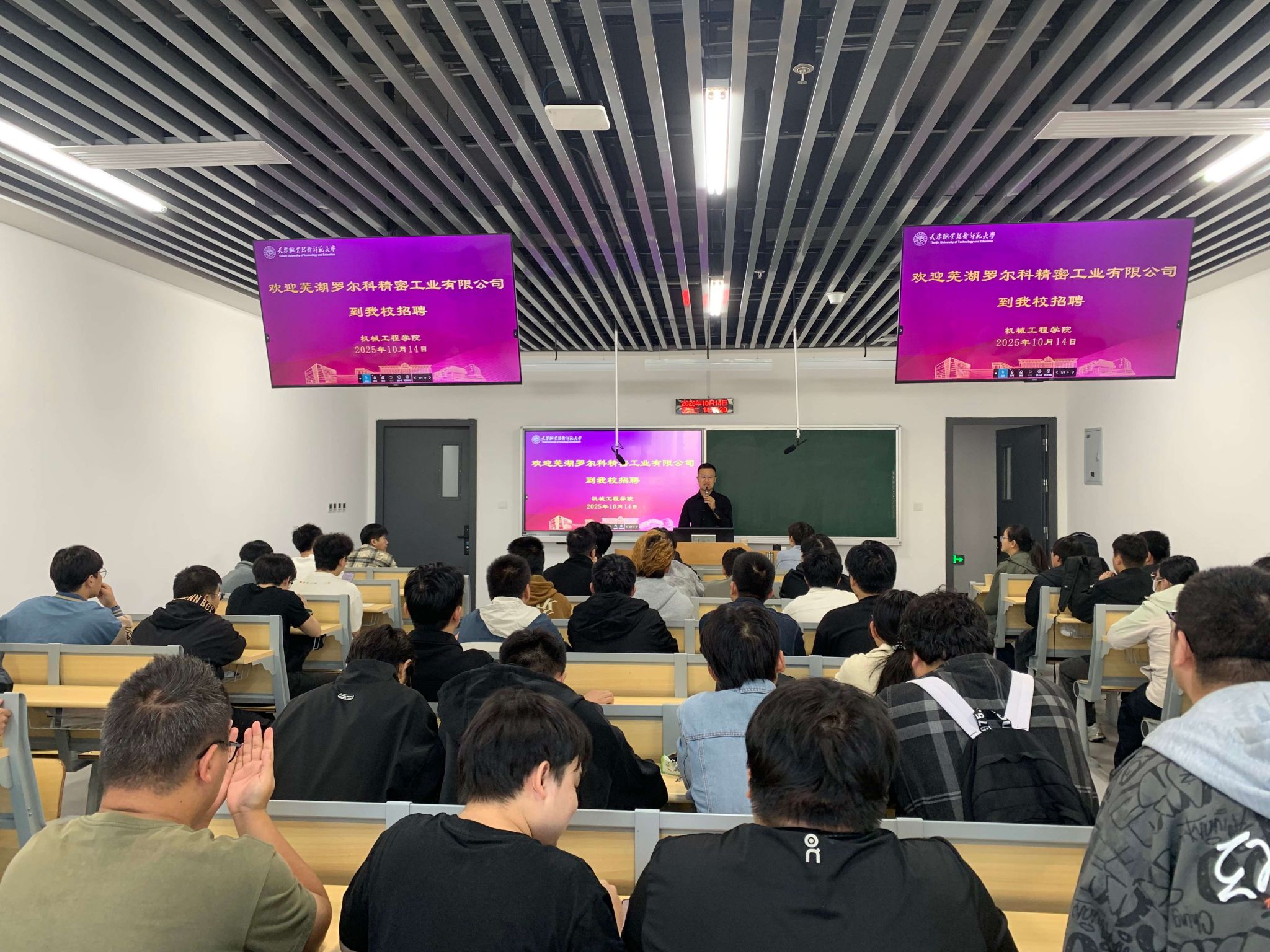 为促进2026届毕业生高质量就业,10月14日,机械工程学院在技能实训楼311室举办罗尔科精密工业有限公司专场宣讲招聘会,学院党委副书记刘娜、全体毕业班辅导员、就业辅导员及毕业班学生代表共计90余人参会。本次专场招聘会计划招聘培训生、工程师等40余人,招聘现场有10余名学生与企业达成签约意向。