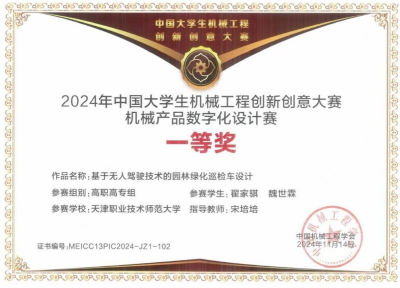 经过赛项评审委员会评审、复核,大赛组委会备案,开云手机站登录入口机械工程学院工业设计专业学生翟家骐和魏世霖的“基于无人驾驶技术的园林绿化巡检车的设计”项目在指导教师宋培培的悉心指导下,脱颖而出,荣获了全国总决赛一等奖。