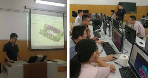 2017 年 7 月 18 日-28 日期间,学院14名骨干教师赴天津汽车模具股份有限公司进行了为期两周的汽车覆盖件模具三维设计培训。培训方派出两位在汽车覆盖件三维设计方面有丰富设计经验的工程师对教师们进行培训。工程师对汽车覆盖件模具设计的整体流程进行了详细的讲解。对汽车模具设计过程中的一些设计技巧和方法进行了示范。为了提升老师们对汽车覆盖件模具的实际了解,理解汽车模具设计过程中的一些结构,参训教师还深入天津汽车模具股份有限公司多个工厂,进行实地学习。