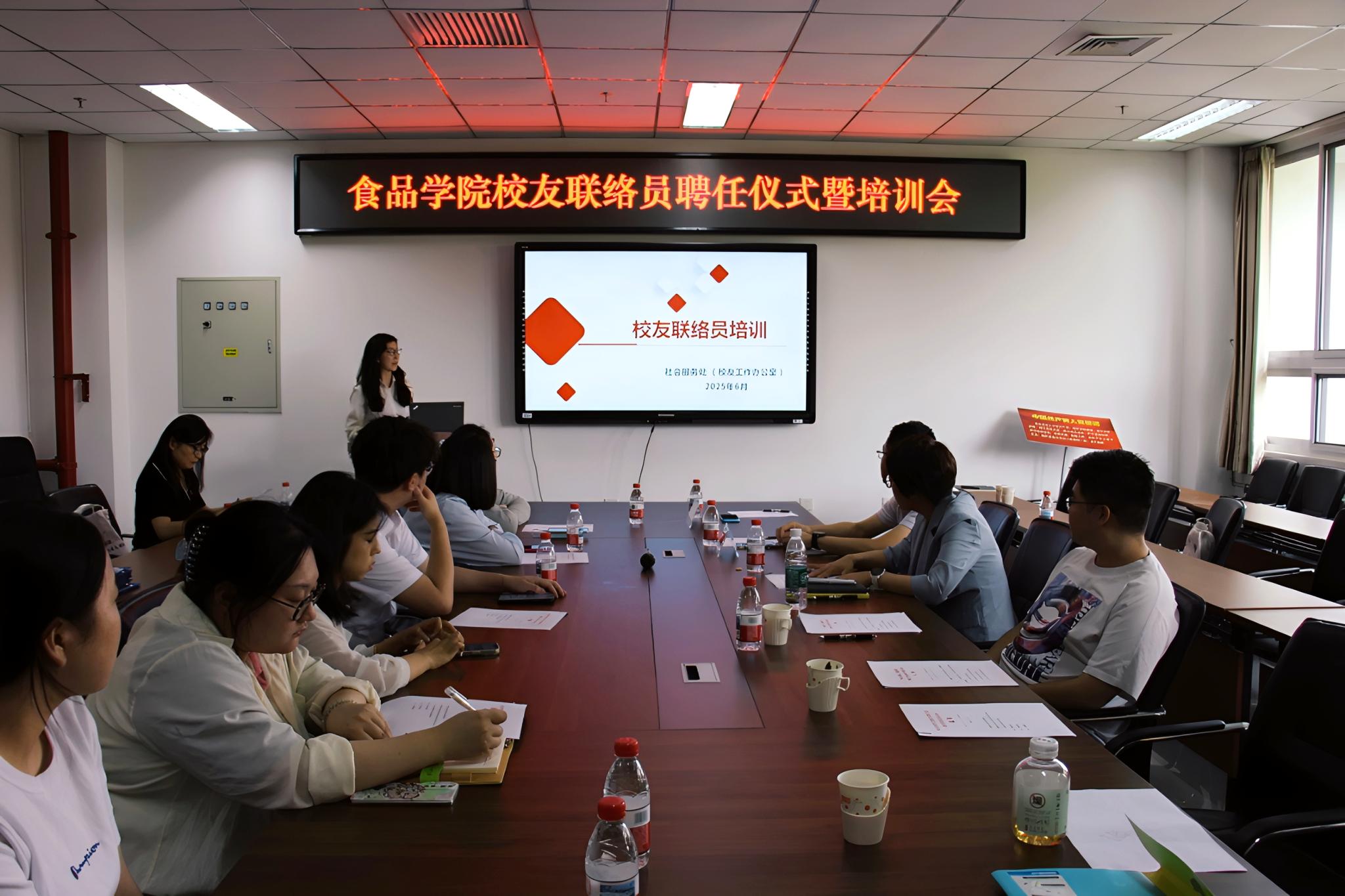 6月19日下午,食品学院举行2025届毕业生校友工作联络员聘任仪式暨工作培训会。学院党委书记靳晓熙,社会服务处副处长陈勇,社会服务处干部赵瑞一,毕业班辅导员及2025届全体毕业生校友联络员参与活动。会议由学院党委副书记张文娜主持。陈勇在致辞中对各位校友联络员的加入表示热烈欢迎和衷心感谢。他指出,校友是学校发展的重要力量,校友联络员肩负着学校、学院与校友之间沟通的桥梁责任,希望各位联络员能够积极宣传母校,分...