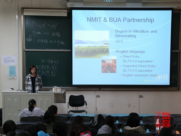2015年4月1日中午,NMIT(新西兰马尔伯勒理工学院)留学宣讲会在教学楼B座101教室举行。NMIT中国区负责人为同学们做宣讲,会议由张巍老师主持。 新西兰马尔伯勒理工学院简称NMIT,是一...